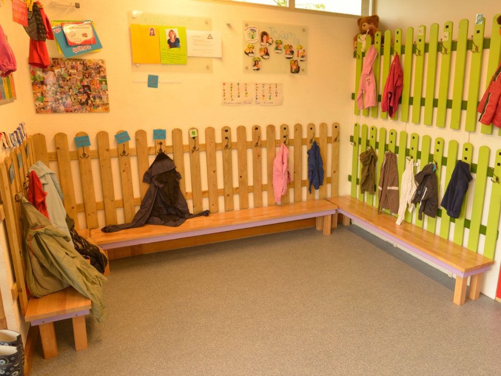 Jedes Kind hat sein persönliches Fach in unserer Garderobe, wo Jacken, Schuhe und persönliche Dinge ordentlich verstaut werden können.
