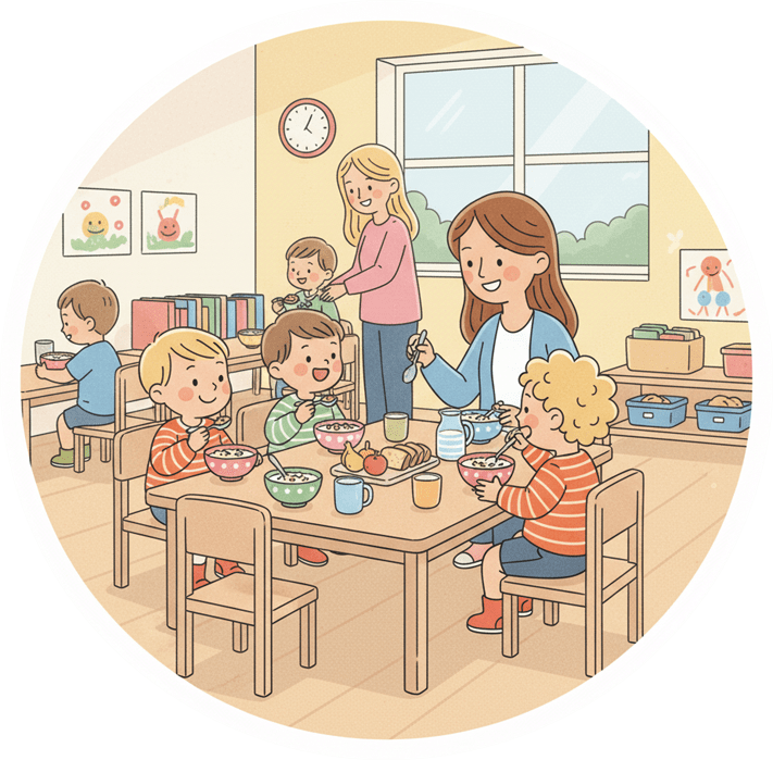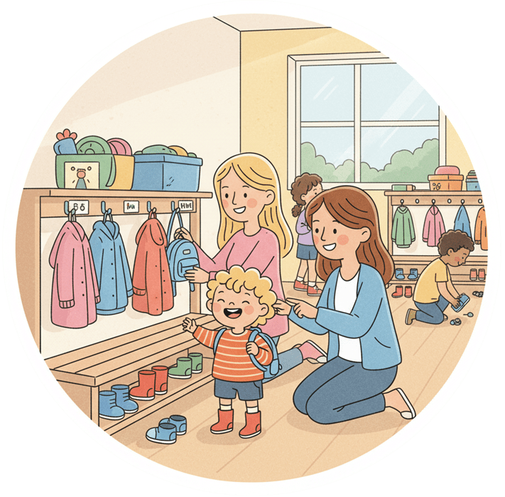 Kinder fühlen sich in vertrauter Umgebung, mit bekannten Personen und regelmässigen Abläufen besonders wohl. Ein fester Tagesablauf hilft dem Kind, sich zu orientieren. Es sind nicht die Uhrzeiten, sondern der gewohnte Ablauf der Aktivitäten, der Orientierung bietet.