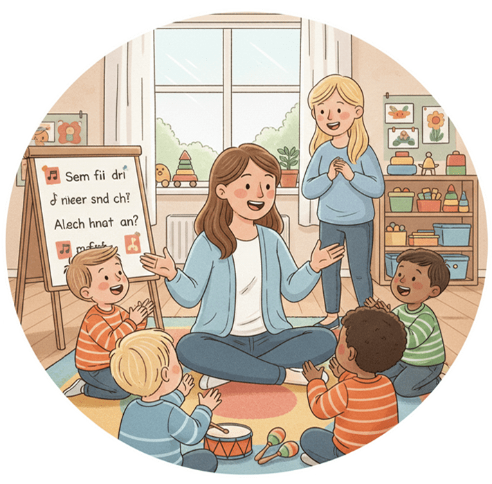 Morgenkreis mit Singen und rhythmischen Bewegungsspielen